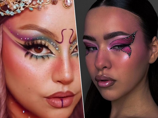 Nos encantan las mariposas y trasladarlas a un maquillaje de Carnaval es algo que nos vuelve locas. Aquí sacaremos nuestras dotes más artísticas y nos marcaremos unas preciosas alas de mariposa, estas nacen desde el lagrimal en dirección hacia las sienes. Primero se dibujan las alas, luego se rellenan de los colores que deseemos y las perfilamos con puntitos blancos para que tengan más relieve.
