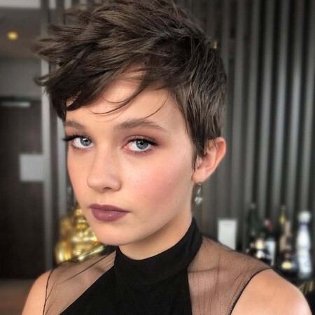 Otra característica del pixie cropped es su capacidad para rejuvenecer y dulcificar las facciones. A diferencia de otros cortes que pueden endurecer el rostro o sumar años, este es precisamente de los que aportan jovialidad. Como decíamos, se pude lucir de muchas formas pero con la raya a un lado pasando ligeramente por la frente es una apuesta segura, tanto por su acción antiaging como por el estilo que aporta.