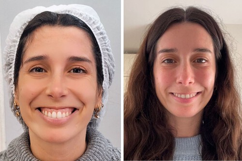 En primer lugar, te dibujan los puntos estratégicos que forman parte de esa hiperactividad muscular de la elevación del labio. Así, la doctora tiene las guías para inyectar los neuromoduladores en su justa medida, disminuyendo la elevación excesiva sin bloquear la sonrisa. No hay más que ver las fotos: el resultado es súper natural.