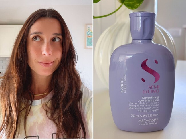 El champú en cuestión es Champú Alisador Capilar Semi DiLino de Alfaparf, que cuesta 16,99 euros en Druni. Lo descubrí de casualidad por un envío de prensa y, desde entonces, no paro de volver a comprarlo. Se trata de una fórmula para x pero, sin esperarlo, se ha convertido en mi truco anti-frizz definitivo. Las fotos de antes y después de usarlo explican claramente la razón.