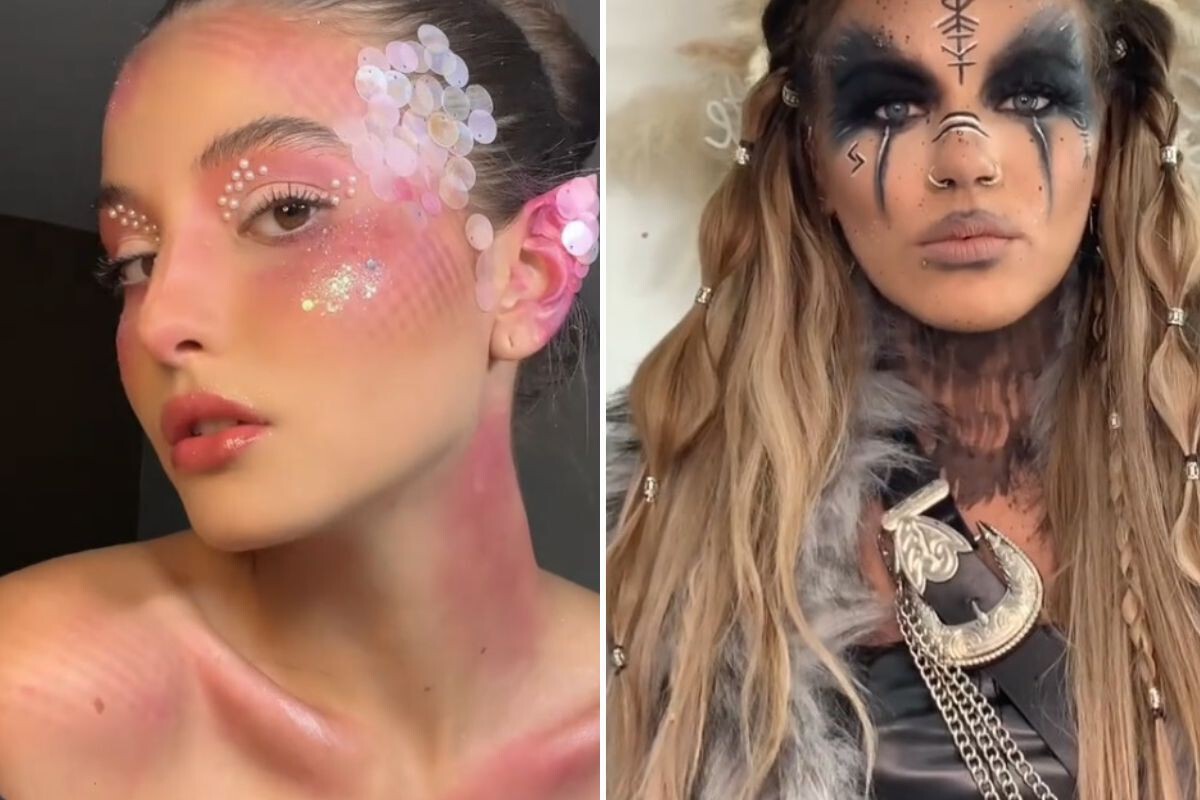 Enamoradas hemos quedado de este maquillaje tan bonito y delicado, que es un híbrido entre una elfa primaveral y una sirena. Para recrearlo no es tan complicado como puede parecer y se necesitarán ciertos productos para lograr este efecto. Sombras rosas, lentejuelas iridiscentes, una malla para crear los dibujos faciales (que bien pueden ser unas medias de rejilla), perlitas adhesivas para decorar los ojos y orejas de elfo.