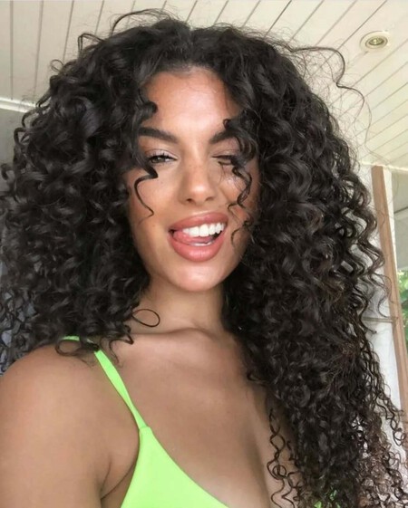 Evidentemente se ha apostado por un corte de pelo con muchas capas, que bien sabemos que son los mejores para que los rizos puedan realzarse y encontrar su sitio y evitar el efecto aplastado en la raíz. Pero además, también se han añadido unas preciosas mechas caramelo que no solamente iluminan y rejuvenecen como podemos apreciar, sino que incluso hacen que los bucles se vean mucho más marcados y definidos. Una fantasía de resultado.