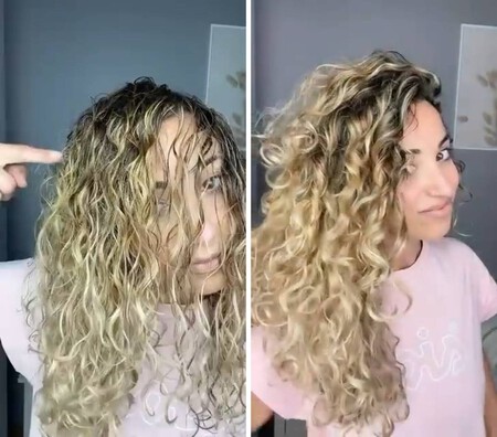 Luego haremos lo mismo con el pelo de lado para definir la melena completa y solo nos quedaría secar con un secador con difusor y lucir unos rizos definidos, bonitos y sin una gota de encrespamiento.