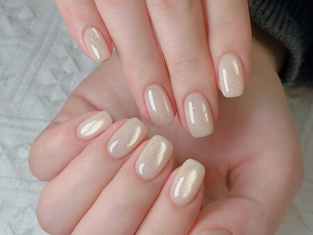 El brillo que nace desde dentro de las uñas forma parte de muchos de los nail art coreanos. Para ello se apuesta por esmaltes con iridiscencias que parecen quedar encapsuladas en las uñas. Los tonos rosas, grises o violetas son sus favoritos.