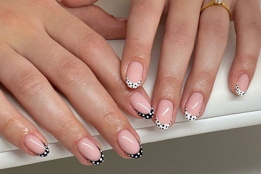 La francesa clásica funciona genial precisamente porque se trata de una manicura cuidada y elegante, así que si añadimos pequeños lunares negros logramos una versión más llamativa y jovial.