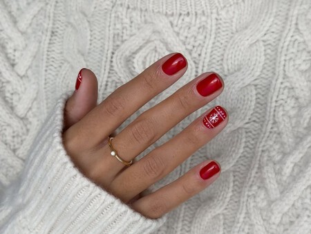 El rojo es la base perfecta para muchos diseños, y si hay un símbolo que relacionamos con la Navidad, esos son los copos de nieve. Un clásico que a la vez puede ser moderno, como esta manicura de uñas rojas y copos blancos que es sumamente atractiva. Aunque también tenemos la opción intercambiar las tonalidades y jugar con los contrastes.