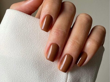Esta es una propuesta sencilla y precisamente por eso es ultra elegante. Solo hay que pintar todas las uñas con un tono tostado como este, que se trata de un café tostado intenso precioso sobre uñas almendradas. El resultado es muy distinguido y sofisticado, una manicura versátil y estilosa, lista para triunfar con cualquier look.