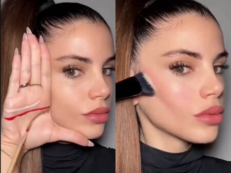 Así es, según este trend tenemos que guiarnos por las líneas de nuestra mano: la línea del corazón, la cabeza y la vida. A cada una de ellas aplicamos un producto comenzando por el corrector que iría en la parte más alta, el colorete líquido en la segunda y, por último, el broncer en la línea de la vida.