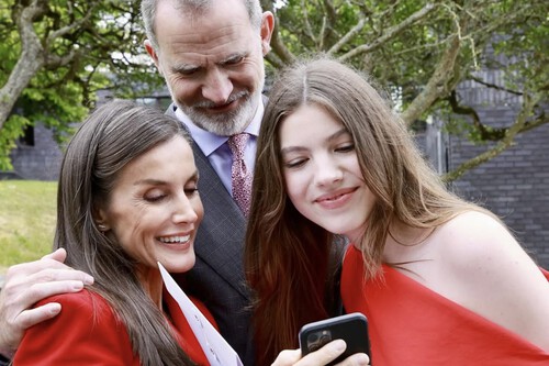 La pasada semana, Felipe y Letizia pusieron rumbo a Gales para acompañar a Sofía en su graduación. Pudimos ver al rey fotografiando a la joven con su teléfono móvil mientras esta recogía su diploma en el estrado. La reina, emocionada, aplaudía orgullosa desde el público.