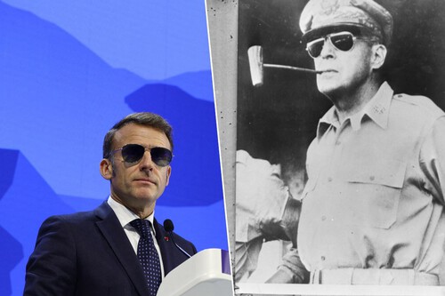 Aunque lo que cuenta la historia de las gafas de aviador no es muy tranquilizador en una época de ánimos tan caldeados como la actual. Básicamente porque su origen se remonta a los años 30 del siglo XX, cuando los aviones empezaron a poder volar tan alto que la Fuerza Aérea estadounidense necesitó unas gafas para evitar los destellos solares y otro tipo de problemas visuales en sus pilotos. Así nació uno de los modelos de gafas más icónicos de Ray-Ban, y una opción mucho más económica para copiarle en la actualidad el look a Macron.