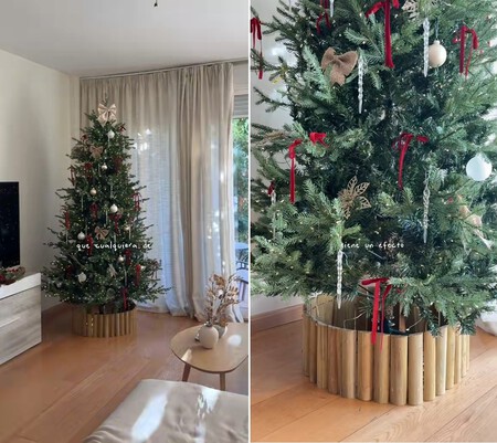 La instalación no puede ser más fácil pues basta con enrollar la bordura alrededor de la base del abeto y ajustarla hasta que quede como deseemos. El resultado es ideal y va en línea con las tendencias que buscan integrar materiales naturales en la decoración navideña. Además, su precio de solo 7,79 euros hace que sea una opción accesible que no tiene nada que envidiar alternativas mucho más caras.