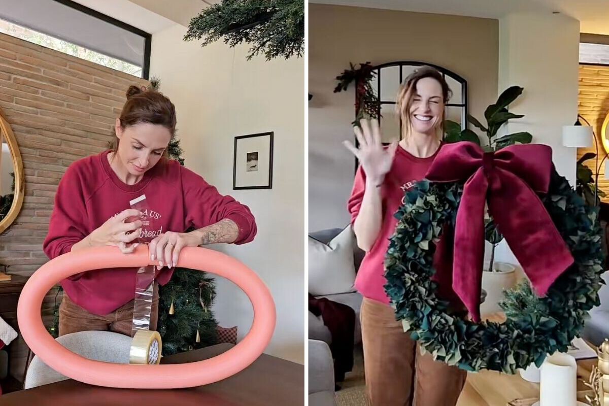 Esta manualidad la he descubierto en la cuenta de TikTok de @atixhomestudio, un canal de decoración repleto de proyectos diy que prepara Natalia Landaluce, decoradora de interiores y especialista en hacer mil monerías con sus manos, como la que te traemos hoy que es especialmente fácil. Se trata de una corona de Navidad hecha con retales de tela y que no puede ser más sencilla. Ni siquiera lleva cola ni pegamento.