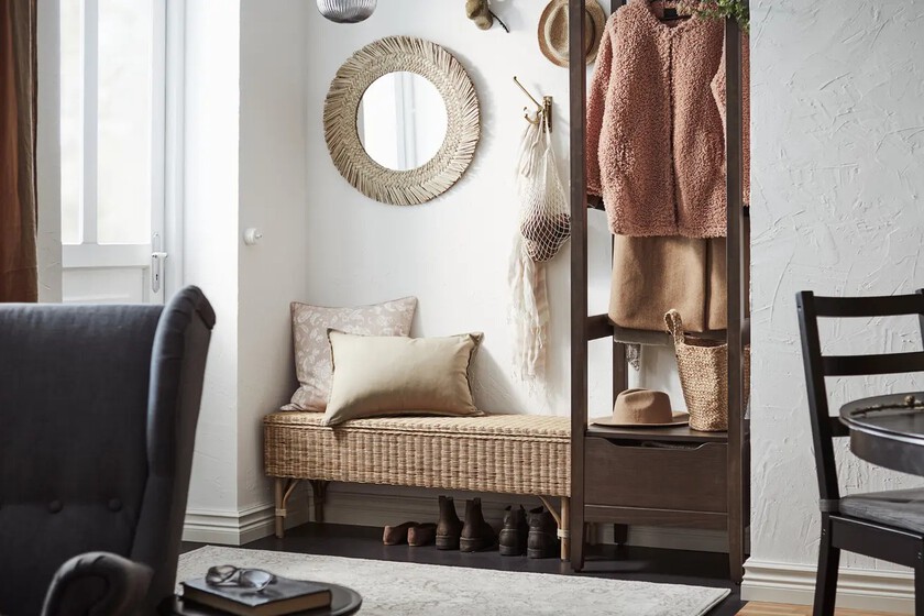 Aunque la alfombra es opcional, elegir un mueble que sirva a la vez para sentarse a calzarse y para guardar el calzado (y evitar así que no pase de esa barrera transicional) es mandatorio. Estos son nuestros favoritos de Ikea: