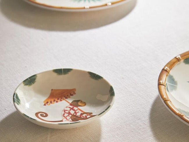 De las palmeras pasamos a la fauna salvaje, con platos repletos de dibujos de elefantes por 5,95 euros, una fuente espectacular por 9,95 euros y la joya de la corona, cuencos con los monitos tailandeses por 2,95 euros, a juego con los platos llanos de 5,95 euros.