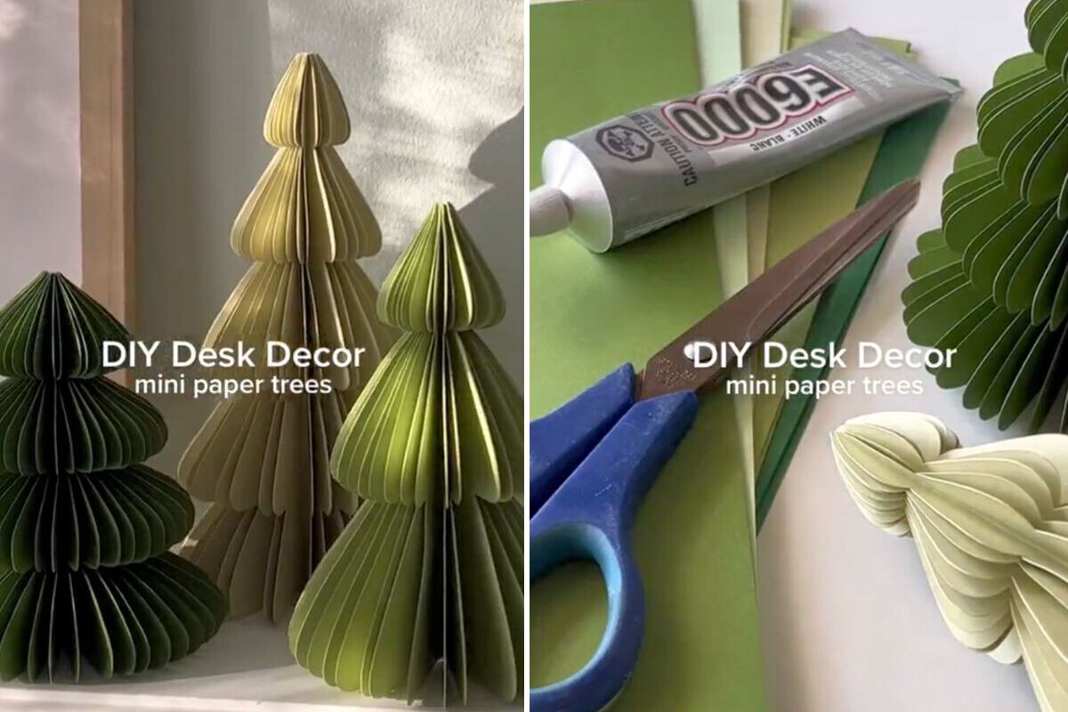 @branchfurniture DIY Mini Paper Christmas Trees 🌲 #papercraft #deskdecor #holiday #christmas #desksetup #diydecor #asmr