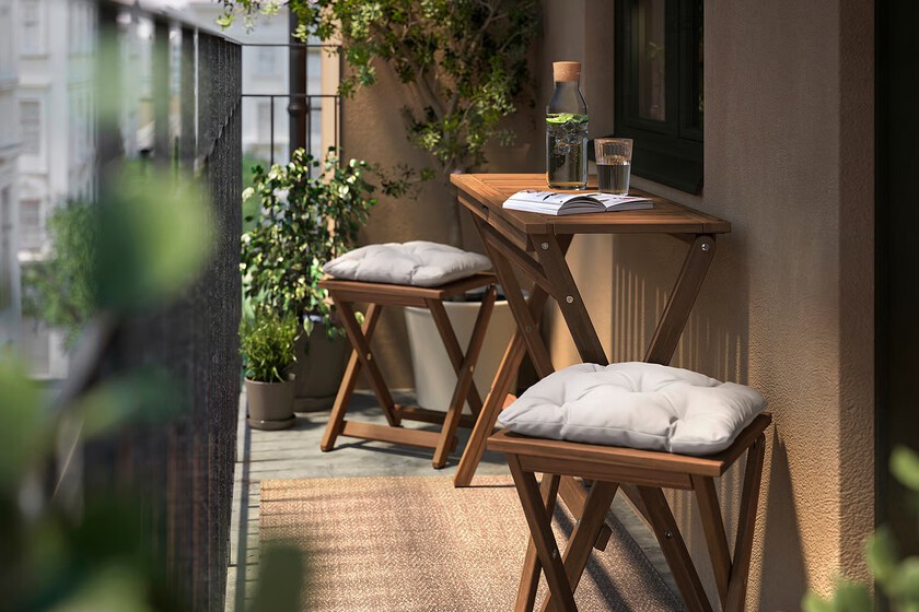 Dejando de un lado lo puramente estético, el problema real de un balcón estrecho es físico porque no cabe nada. O eso creía yo hasta que encontré la mesa plegable Nämmarö de Ikea. Mide 108 x 37 x 75 cm, pero lo más importante no son esos 37 cm de ancho... Lo mejor es que se pliega, desapareciendo casi por completo y sin estorbar lo más mínimo al paso.