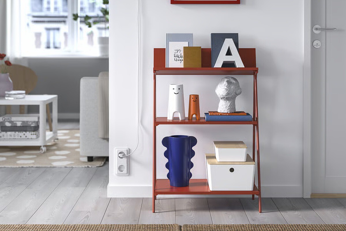 La estantería Krönikör de Ikea no es una mera solución de almacenaje, es un objeto decorativo para llenarla de cosas que te gusten. De este modo, no solo las tendrás a mano sino que le darán al mueble un toque muy personal, potenciando aún más ese toque especial del rojo inesperado. Además, es tan versátil que lo mismo te sirve para una entrada, un pasillo o para hacer las veces de mesita de noche.