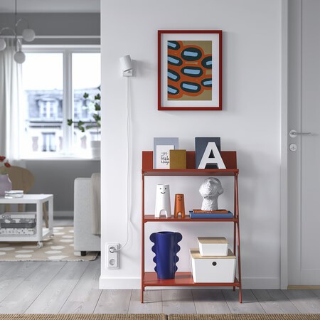 La estantería Krönikör de Ikea no es una mera solución de almacenaje, es un objeto decorativo para llenarla de cosas que te gusten. De este modo, no solo las tendrás a mano sino que le darán al mueble un toque muy personal, potenciando aún más ese toque especial del rojo inesperado. Además, es tan versátil que lo mismo te sirve para una entrada, un pasillo o para hacer las veces de mesita de noche.