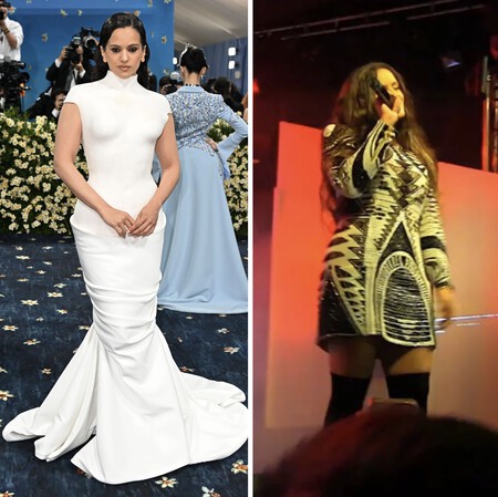 Este icónico vestido era de corte mini y manga larga con el cuello redondo y estampados geométricos y étnicos en blanco, negro y beige. Tras la confesión de Rosalía frente al diseñador de Balmain, él mismo estaba bastante sorprendido y repetía: "tú nunca me lo habías contado". Ahora, diez años después, la firma francesa sigue siendo una debilidad para Rosalía y su vestido de esta MET gala es la prueba de ello.