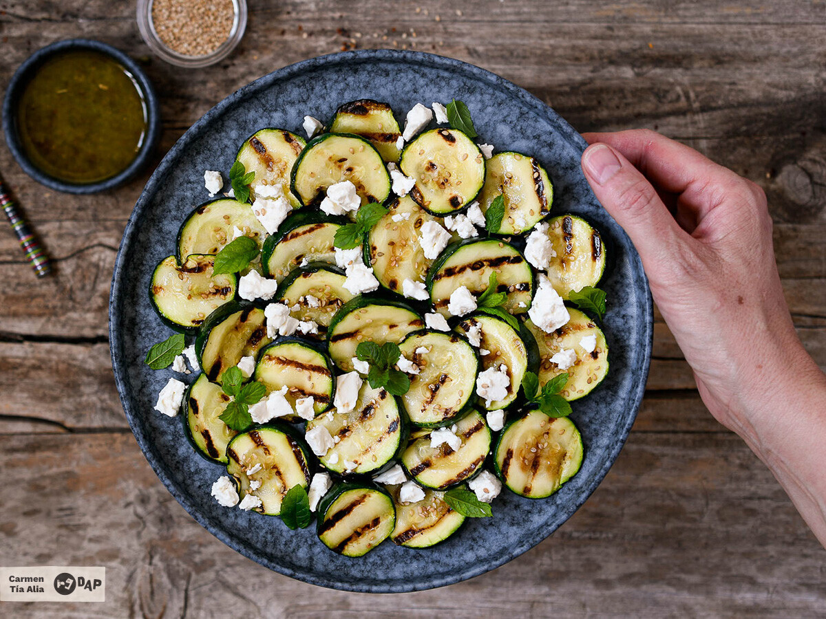 Básicamente, lo único que hay que hacer es saltear los calabacines con ajo y menta, mezclarlo con uvas pasas, piñones tostados y alcaparras desaladas, y coronar con una miga de pan dorada, que aporta un toque crujiente irresistible . El resultado es un plato ligero pero sabroso, con un punto dulce y salado a la vez, que se disfruta tanto templado como frío. Además, se conserva perfectamente en la nevera durante varios días porque es de esas preparaciones que mejoran con el reposo. Ideal para llevar a la oficina.
