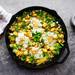 Un truquito opcional, para quienes quieran que el resultado final sea más cremosos, es añadir una cucharada de yogur griego o un chorro de bebida vegetal sin azúcar al final de la cocción. Finalmente, solo nos quedaría emplatar poniendo las verduras como base y colocando encima el huevo.