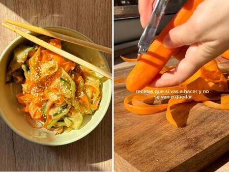 Para hacer esta ensalada de pepino y zanahoria que nos propone Anabel Gutiérrez Fernéndez, conocida en TikTok e Instagram como @belfoodana, necesitamos un pepino y dos zanahorias (cuatro si son pequeñas), una cucharada de aceite sésamo, cuatro cucharadas de salsa de soja suave, la ralladura y el zumo de medio limón, semillas de sésamo y una lata de caballa o melva en aceite de oliva.