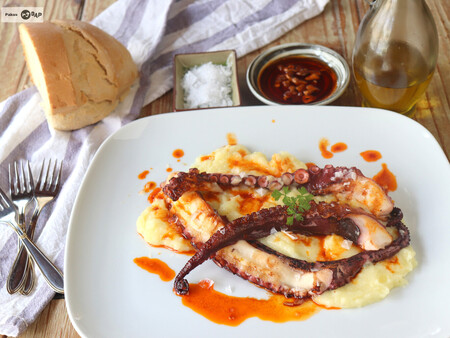 No sé si alguna vez habrás probado a hacer un pulpo a la plancha, pero tenía una amiga que le llamaba “los torreznos del mar” porque los extremos de las patas quedan crujientes. Solo necesitas añadir un buen chorro de aceite de oliva a una sartén bien caliente y poner las patas una a una como harías con un filete de pollo.Vas a darles la vuelta hasta que queden doradas y solo al final, añadirás sal en escamas. Puedes servirlo sobre un puré de patatas como hacen en la receta original de Directo al Paladar, con un hummus ligero o con unas patatas cocidas. El resultado es espectacular.
