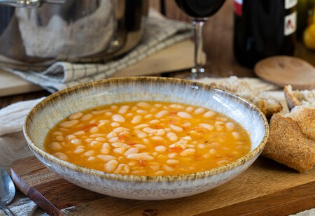 Comenzamos poniendo a remojo las alubias blancas en agua fría la noche anterior. Lo hacemos para que la legumbre seca se hidrate, se hinche y se vuelva tierna, pero según los expertos de Directo al Paladar, siempre deberíamos dejarlas “a remojo en agua salada además de comprar legumbres nacionales de calidad y, a ser posible, de la temporada más reciente”.