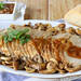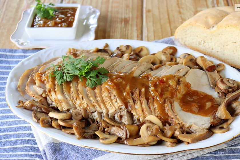 Cuando la carne esté lista, solo tenemos que romper su cofre de sal, y filetear el lomo en lonchas muy finas. No te olvides de las guarniciones, como unos champiñones salteados o una sencillas patatas que para darles más empaque, podemos hacer en versión Cambray. Ricas, crujientes y facilísimas.