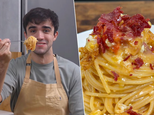 Explica en sus redes sociales que esta es una “carbonara española porque lleva jamón ibérico, tomate, queso manchego y aceite de oliva”. Y te aseguro que nada tiene que envidiar a la carbonara italiana. Es untuosa, divertida y muy fácil de hacer. En 15 minutos tienes la cena ideal.