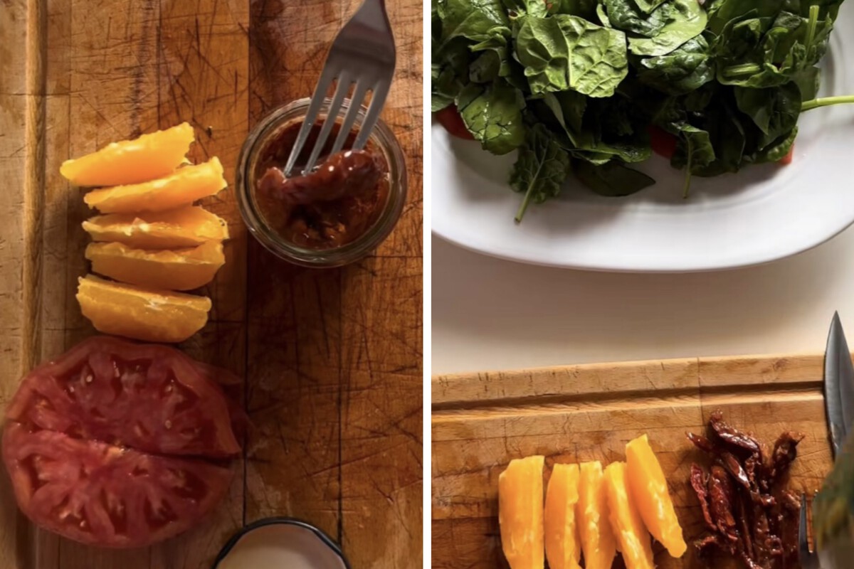 Tras una temporada donde la sandía o incluso los melocotones eran nuestros ingredientes estrella en las ensaladas de julio y agosto, ahora vamos en busca de sabores más otoñales, pero sin renunciar a ese toque ácido y dulce que nos aportan ciertas frutas. Por eso cuando vimos esta receta con tomate y naranja supimos que se trataba de una combinación ganadora. Basta con que la pongas a prueba para que te enamores del plato.
