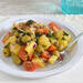 La receta viene de la pequeña isla de Pantelaria, entre Sicilia y Túnez y es una especie de ensalada campera pero 100% vegetal y con un toque muy italiano. Colorida y fresca, esta ensalada tiene un auténtico sabor mediterráneo y se compone de una base de patatas cocidas, tomates cherry, cebolla roja y alcaparras, uno de los productos más típicos de esta zona. Para dos personas necesitamos 200 gramos de patata, 150 gramos de tomates cherrys y media cebolla morada para armar la base de la ensalada.