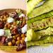 Comenzamos lavando muy bien los calabacines y secándolos. Si puedes, elige los calabacines pequeños para que tengan menos semillas y córtalos con ayuda de un pelador de verduras. Queremos láminas finas que pasaremos por la plancha con un poco de aceite. Si el calabacín está tierno y lo cortas muy fino, podrías saltarte este paso y servirlo crudo como hacemos con esta receta de calabacín con pesto. Le dará un toque crujiente y está buenísimo. Escurrimos y lavamos muy bien los garbanzos, secándolos después para que pierdan el exceso de agua, y lo mezclamos con un poco de aceite de oliva y algunas especias al gusto como pimentón dulce, cúrcuma o curry. Pasamos los garbanzos unos minutos por la sartén y retiramos.