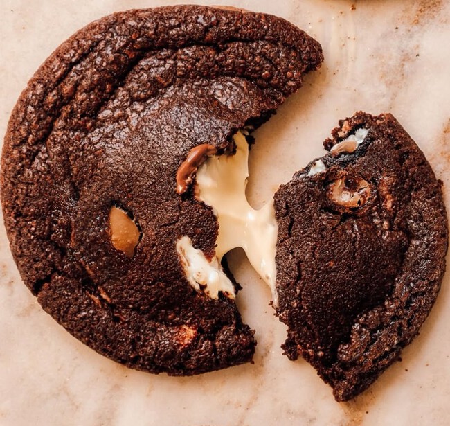 La unidad sale tres euros y solo el embalaje (un poco Bridgerton) ya merece la pena por sí mismo. Sin embargo, igual que personas de todo el mundo acuden a la calle Rokin y esperan el tiempo que haga falta para probarlas, también somos muchos los que nos vamos automáticamente en cuanto vemos la cola que hay que hacer a la intemperie. Es decir, que nos toca u olvidarnos o hacerlas en casa. Quienes ya las han saboreado dicen que saben como Oreo, pero con el toque de un centro derretido. Aquí va la receta de la repostera Estefi Colombo para recrearlas estés donde estés.