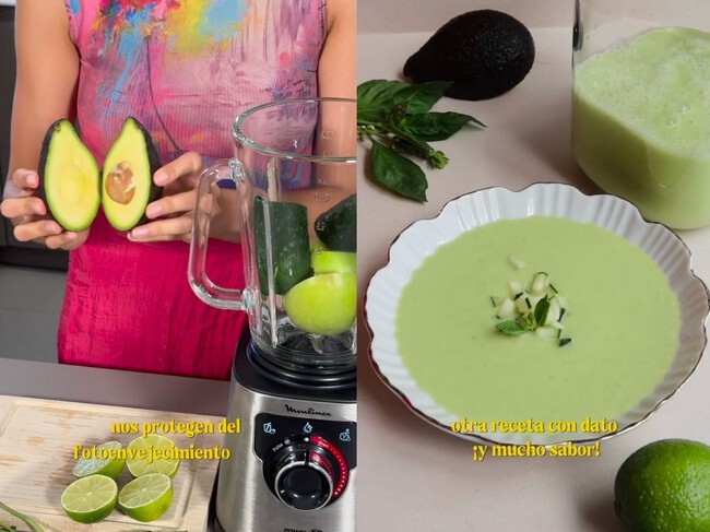 Marta Verona, nutricionista y chef que puede que te suene porque ganó MasterChef en su sexta edición, comparte en sus redes sociales un gazpacho verde perfecto para las noches más calurosas del verano. Nos explica que las sopas frías, gracias a la cantidad de antioxidantes que tienen sus vegetales crudos como el pepino, nos protegen del fotoenvejecimiento. Y además está buenísima.