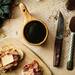 Para potenciar el sabor del jamón, propone echarle un poco de ralladura de piel de naranja al café solo y embadurnar la rebanada de pan con esta insólita mezcla, tal y como habríamos hecho con el aceite o con mantequilla. Después, tostamos el pan y por último le ponemos el jamón ibérico encima.