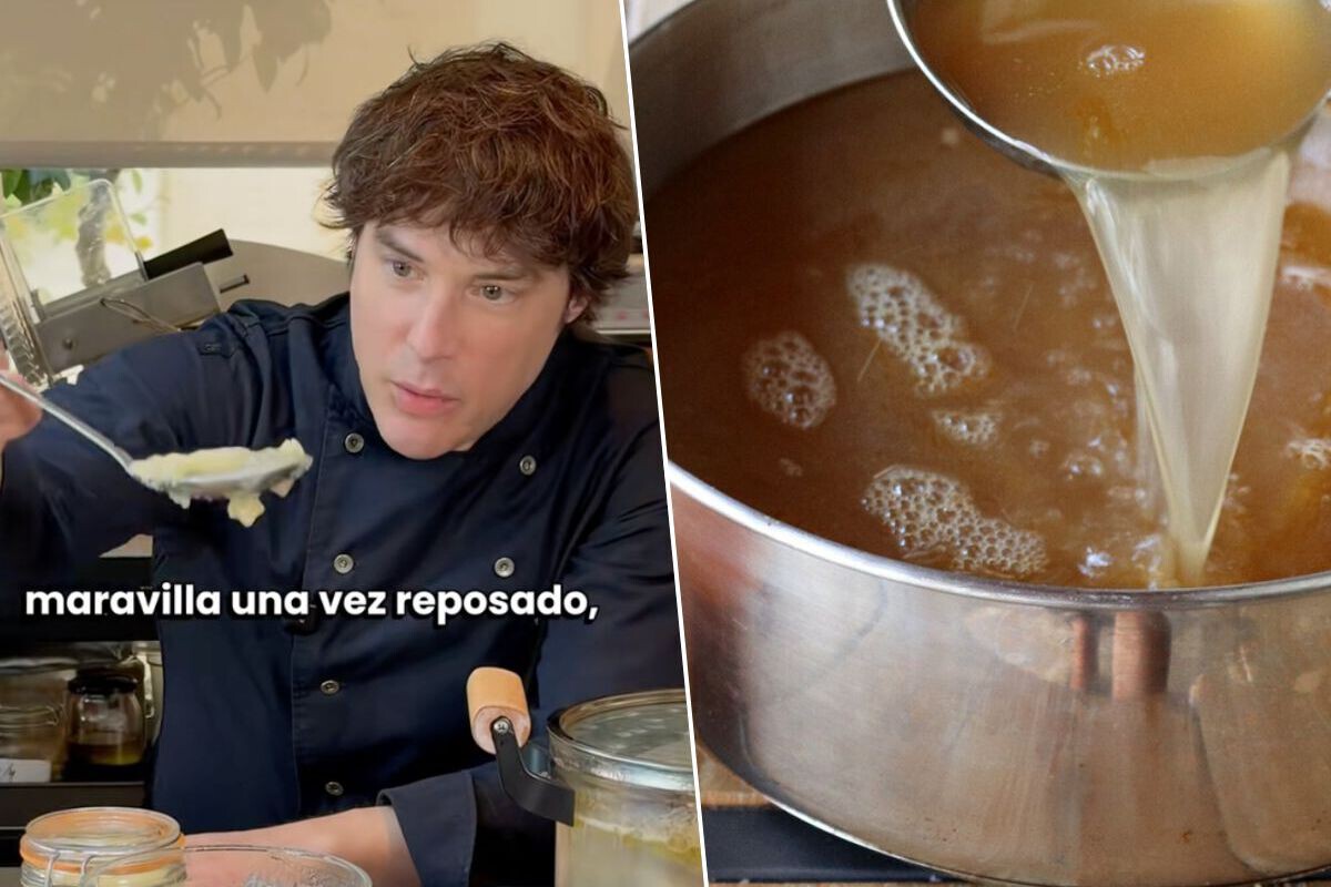 Podríamos tostar los huesos de antemano para conseguir un sabor más profundo, pero explica Cruz que “al tratarse de una extracción de sustancias o grasas buenas para el organismo, el tostado previo puede resultar agresivo para estas”. Y el truco del que nadie te habla: “puedes añadir un chorrito de vinagre que ayuda a liberar minerales”, como explica el chef en el texto de su vídeo.