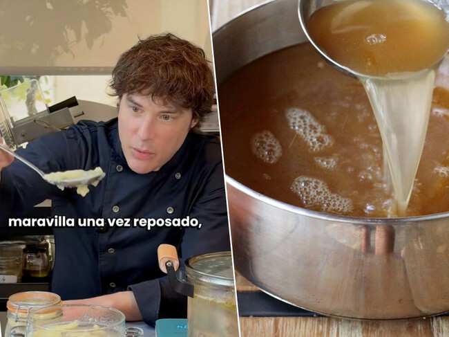 Podríamos tostar los huesos de antemano para conseguir un sabor más profundo, pero explica Cruz que “al tratarse de una extracción de sustancias o grasas buenas para el organismo, el tostado previo puede resultar agresivo para estas”. Y el truco del que nadie te habla: “puedes añadir un chorrito de vinagre que ayuda a liberar minerales”, como explica el chef en el texto de su vídeo.