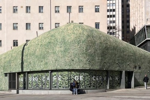 Si pasáis a menudo por Plaza de España es imposible que no hayáis reparado en lo que muchos madrileños conocemos como "el búnker" o "la ballena": una estructura metálica de color verde que prometía ser una cafetería, pero que parecía que no terminaba de arrancar. Hasta ahora: el pasado 8 de enero abrió sus puertas el nuevo 'Café de Cervantes', en el corazón de la capital, y gestionado por el Grupo Casa Remigio.