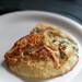 Una vez cuajada nuestra tortilla de calabacín, la colocamos en un plato y cortamos un triángulo de queso brie en tres porciones. Las ponemos rápidamente sobre la tortilla para que se fundan sobre ella con el calor remanente. Por supuesto, también servimos inmediatamente.