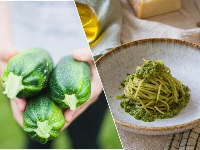 Una de mis favoritas es la salsa pesto de brócoli o brocolipesto, pero también preparo otra variante con espinacas frescas, y lo he llegado a hacer con rúcula y nueces. Me encanta aprovechar cualquier hoja verde, unos frutos secos y parmesano, para conseguir una salsa rápida en 5 minutos que preparo mientras se cuece la pasta (y me sobra tiempo). El que te traigo hoy es con una de las verduras más ricas del verano. Un pesto de calabacín.