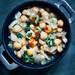 Después, incorporamos los garbanzos, un poco de sal y perejil picado, y dejamos que se cocinen otros cinco minutos más. Por último, solo nos queda emplatar, echar un chorrito de aceite por encima y dar el toque Arguiñano con unas hojas de perejil.