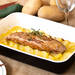 Cubrimos el recipiente con papel albal y lo metemos durante 40 minutos en el horno a 170 ºC. Mientras, salpimentamos el solomillo y lo marcamos en una sartén a fuego fuerte por todas sus caras. Después, abrimos con cuidado el papel albal e incorporamos el solomillo.