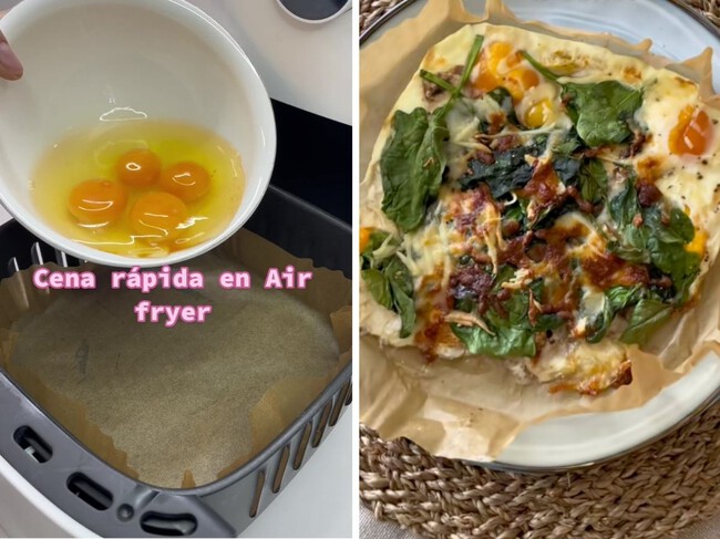 La receta es de la nutricionista Rosa Rullan, que comparte en sus redes sociales algunos de los platos que ella misma come y que tienen algo en común, y es que son fáciles, sanas y ricos. Esta vez es una receta que nos recuerda a los huevos al plato, pero en airfryer y vaciando las verduras olvidadas que tienes en la nevera.