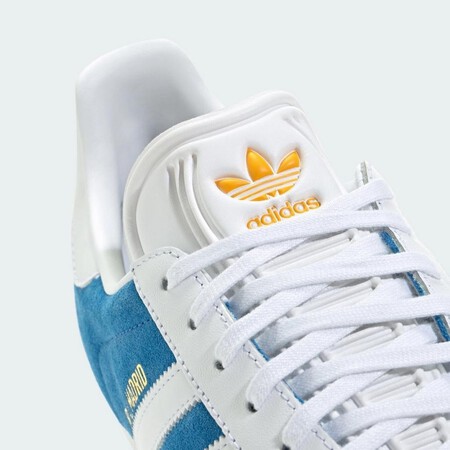 El diseño mantiene la silueta clásica de las Gazelle, con su inconfundible perfil bajo: las tres bandas laterales y la suela de goma que tanto nos gusta por la comodidad que brinda. Sin embargo, lo que marca la diferencia es su color azul intenso, un tono elegante y versátil que no solo conecta con la estética del Real Madrid, sino que encaja perfecto con las tendencias actuales.