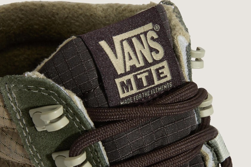 Este diseño de zapatilla, que emula más una bota de alpinismo, mantiene la estética clásica de Vans, con su característica caña alta y la franja lateral en blanco, pero se renueva con una paleta en verde bosque que encaja de maravilla con la gama cromática otoñal.