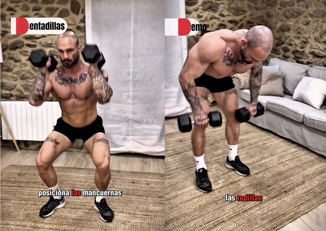 El resultado es una rutina redonda: ocho circuitos que cubren bíceps, tríceps, hombros, pecho, espalda, core, glúteos y piernas. Todo con dos mancuernas y sin necesidad de máquinas o equipamiento extra, un entrenamiento que Toro remata con la idea: "¿Tienes dos mancuernas? Entonces tienes un gimnasio en casa".