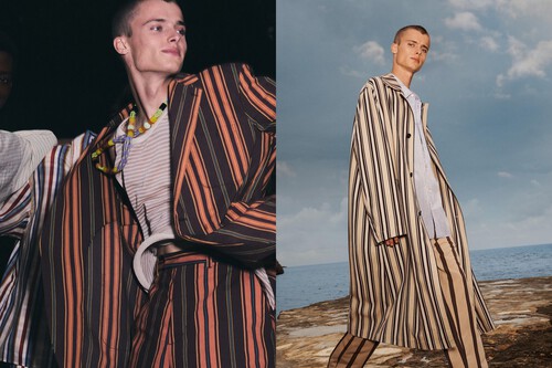 Dentro de esta tendencia, las rayas se colocan como las grandes protagonistas del momento. Finísimas o más marcadas, verticales casi siempre, aportan ese aire clásico que equilibra el desenfado del pijama. Estas líneas recuerdan al imaginario tradicional del descanso, pero reinterpretadas en tejidos más resistentes y cortes pensados para pisar asfalto.
