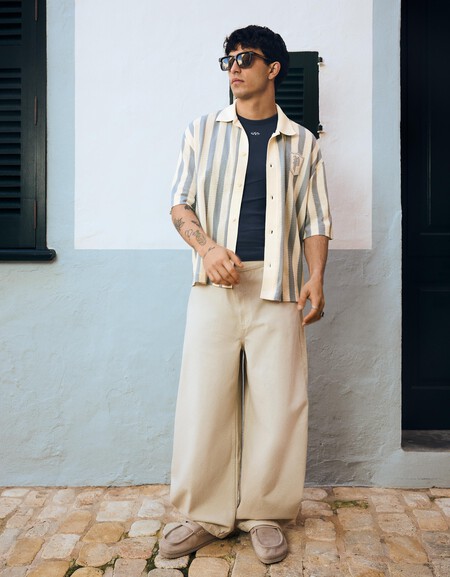 Como muchas de las prendas del día a día, las camisas resort no pueden ser ajenas a actualizarse con un aspecto vintage, y Bershka lo sabe al presentarnos una propuesta a rayas que nos remite a los años setenta, pero con detalles deportivos como el parche, tomado de la estética preppy que la hacen mucho más casual.