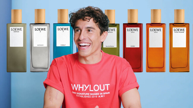 Durante una entrevista para el canal de YouTube de GQ, Márquez enumeró los esenciales que siempre lleva consigo, y entre ellos, destaca un perfume masculino que considera "muy limpio": el 7 de Loewe.